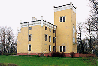 stiilis mõisahooneid, mille massiivne kuubikujuliune vorm, viiekorruseline nurgatorn ning sakmeline rinnatis olid mõjutatud keskaegsest linnusearhitektuurist.