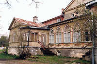 Omapärane on hoone tagakülge kaunistav teravkaarakendega neogooti stiilis veranda.