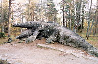 Lossi (peahoone) lähikonnas asuvad von Glehni enda rajatud lohe ja sarvilise Kalevipoja skulptuurid.