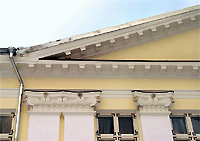 Hoone fassaadi kaunistavad kolm kolmnurkfrontooni, tagaküljel on kaunis aiatrepp. Keskrisaliiti kaunistavad suursuguste korintose kapiteelidega kaheksa pilastrit. Hoone peakorruseks on teine korrus, esimene on madal majanduskorrus. 19. sajandi lõpul on hoonet veidi ümber ehitatud.