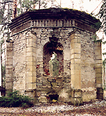 ehitatud hulknurkne matusekabel on varemeis ja paikneb