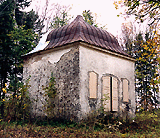 Mõisast poolteist kilomeetrit loodes, Anna kirikusse suunduva tee ääres asub mõisaomanike hilisbarokne voluutkatusega matusekabel.