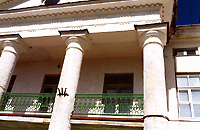Kelpkatusega hoone fassaadi kaunistab kolme sambaga portikus, mida ilmestab kolmnurkfrontoon. Frontooni karniise kaunistab hammaslõige. Hoonele on iseloomulikud ka madalad pööningukorruse, nn mezzanino-korruse aknad.