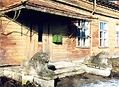 Peahoone on pikk ühekorruseline puidust ehitis. Lameda kelpkatusega hoonet kaunistab hammaslõikeline räästakarniis, peasissekäiku ääristavad dolomiidist lõvikujud.