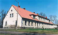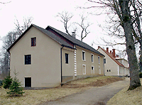 kivihoone keskosa kaunistas algselt segmentkaarse aknaga kolmnurkfrontoon.