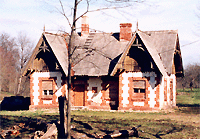 aednikumaja. Majal on järsk viilkatus ning puhta tellislaoga nurgakvaadrid.