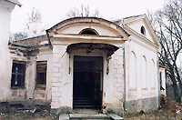 tiibhoone, mida iseloomustavad kaaraknad ja lamedad kolmnurkfrontoonid. Sissepääs asub vana ja uue osa vahel paiknevas nurga all oleva seinaosas. Seda kaunistab nurgakvaadrite imitatsioon ja kaarfrontoon.