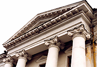 peahoone valmis 1803. aastal. Hoone katuseäärt kaunistab hammaslõikeline friis ning aknaid nende kohal paiknevad kolmnurkfrontoonid. Fassaadi keskosal on nelja joonia sambaga kolmnurkfrontooniga portikus. Portikuse ees asuvad kaks osaliselt kahjustatud malmist lõvikuju. Säilinud on ka mitmed suursugused interjöörid. Hoones asub hooldekodu.