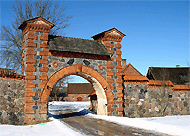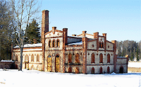 kõrvalhoonete kompleks. Enamik neist on valmistatud maakivist ning kaunistatud tellistega, mille abil on loodud keerukaid mustreid.